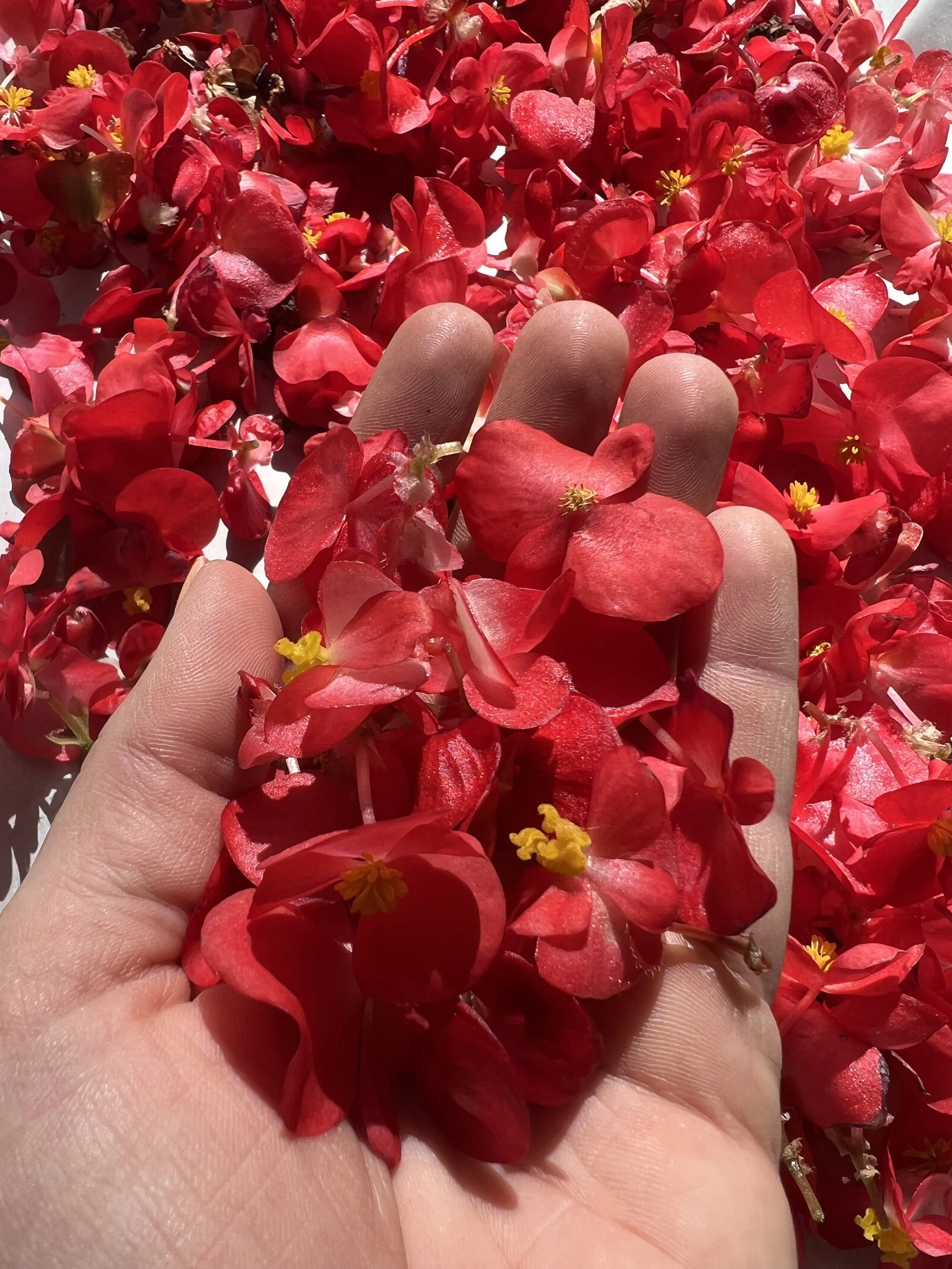 Sage, Lavender, Juniper, Begonia, Rosemary, Mum and Marigold.